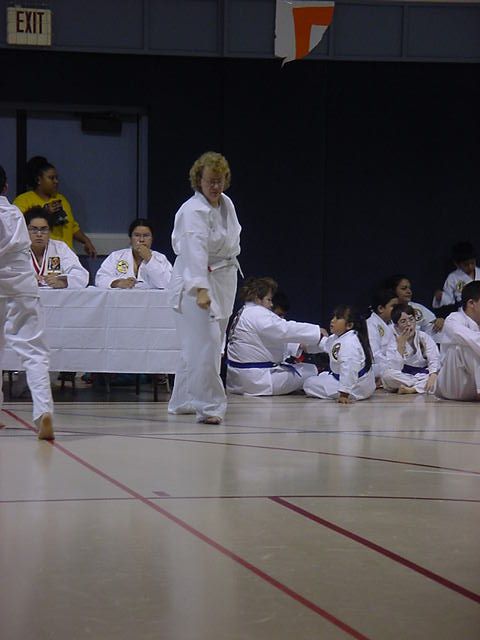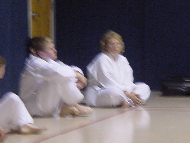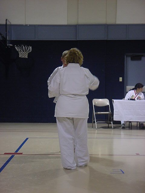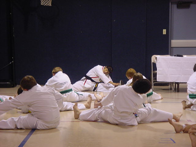 Lynn Streaching before her test |